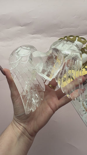The Lemurian Heart with Angel Wings evoke a sense of celestial guardianship offering comfort, protection and a reminder of unseen support from your spiritual team. The graceful curves of the crystal wings reflect ethereal energy while the warm golden stand grounds the piece harmonising heaven and earth in perfect balance