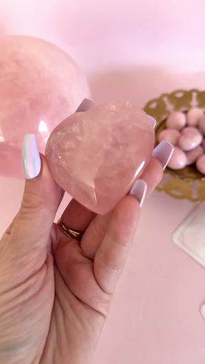 Crafted from high quality Rose Quartz, this heart radiates celestial and divine energy, carrying a tender yet powerful vibration that soothes the emotional body and elevates the spirit allowing the ethereal beauty of unconditional love to flow from higher realms into the heart space