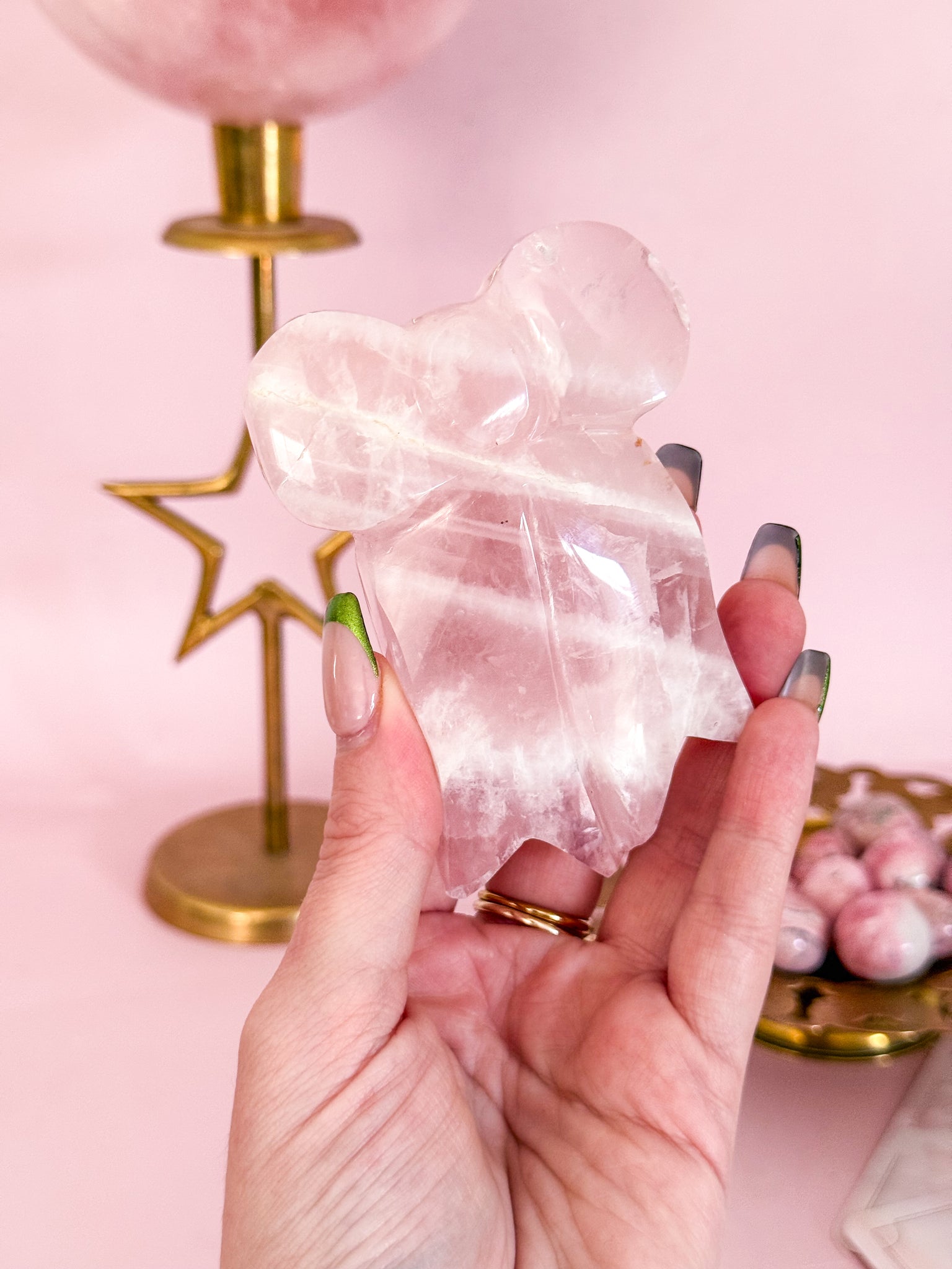 Rose Quartz is a beautiful talisman for those walking a path of heart healing, compassion and connection. This Rose Quartz bow is more than a crystal - it is a soft whisper of the divine love held within